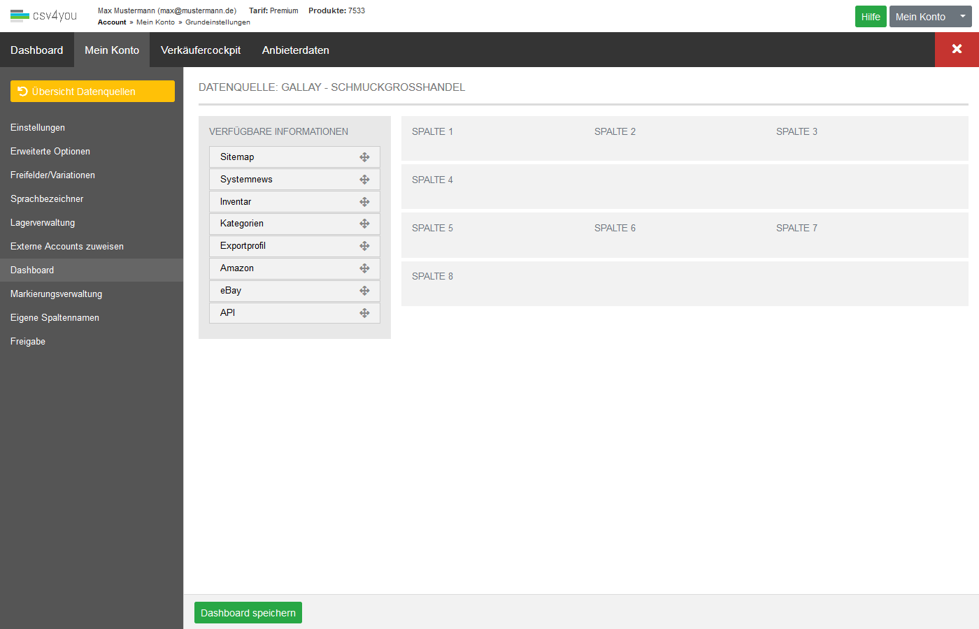 Dashboard anpassen