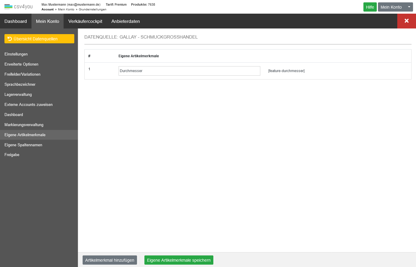 Eigene Artikelmerkmale einrichten