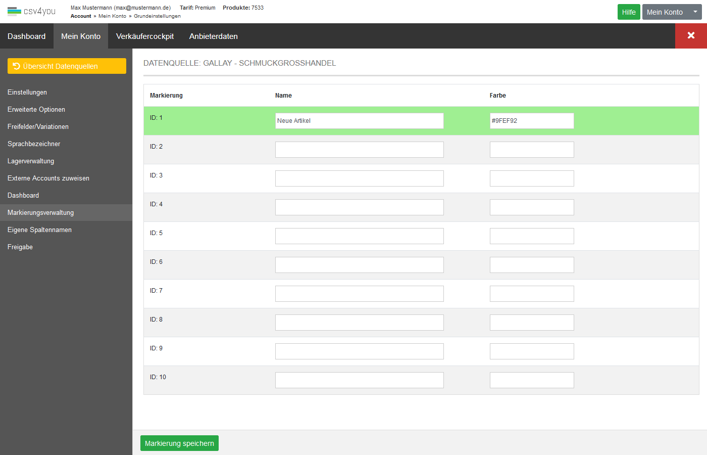 Setzen Sie eigene Markierungen für Ihre Produkte. Markierungen können das Bearbeiten von Produkte vereinfachen. Benutzen Sie zum Beispiel die Markierungen für neue Artikel, wo Sie noch die Beschreibungen für eBay bearbeiten wollen.