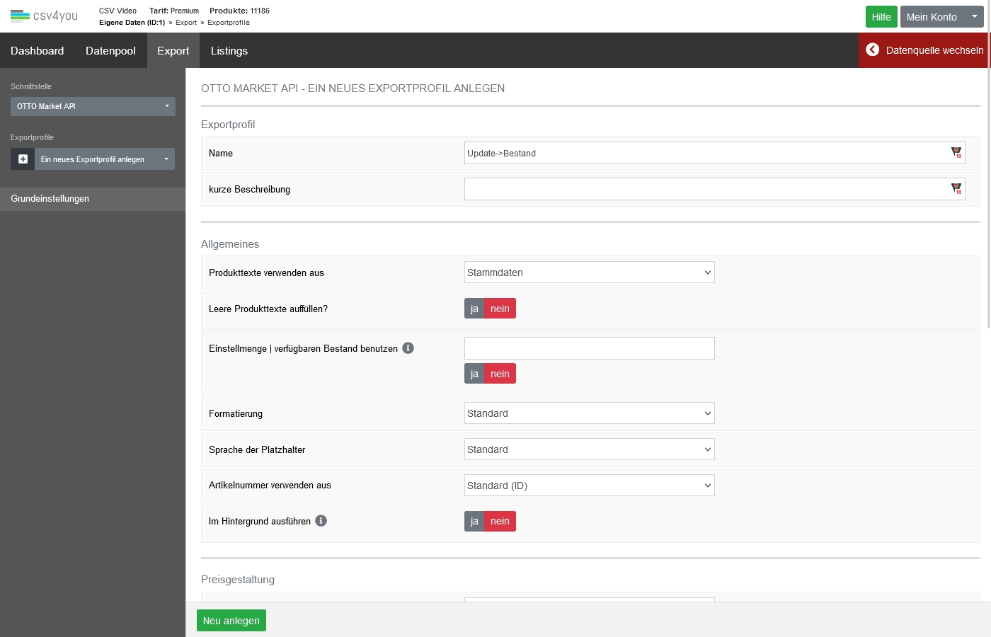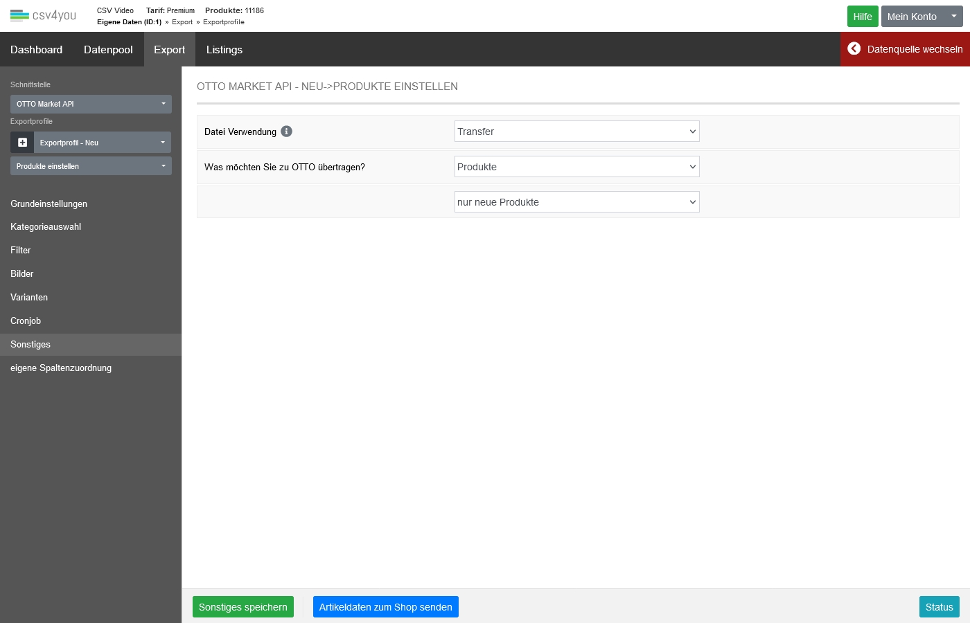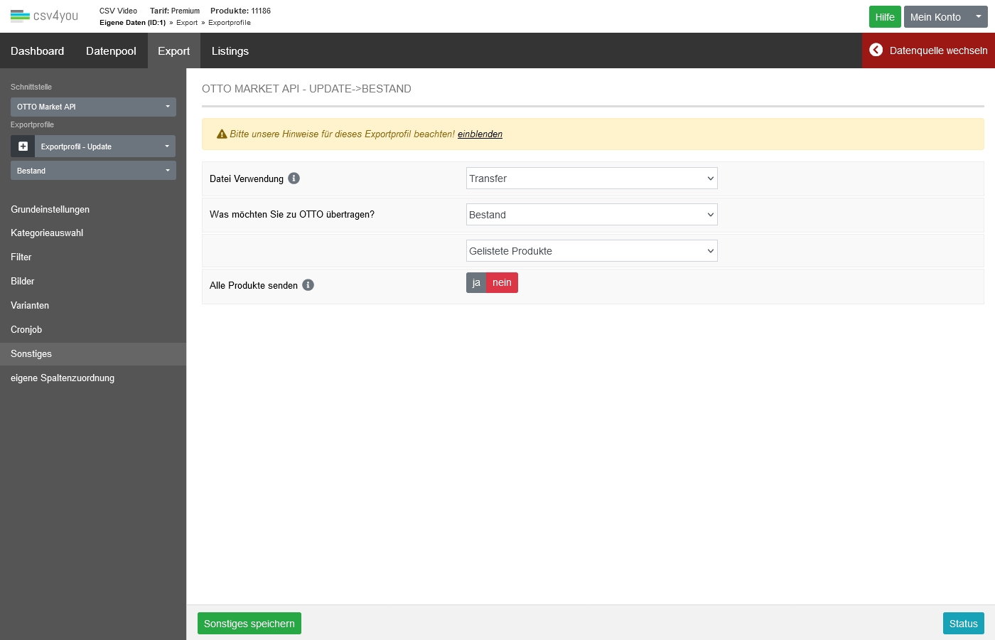 Durch das Zurücklesen der Otto-Daten erkennt unser System, welche Produkte einen Bestandsabgleich benötigen. Diese werden durch dieses Exportprofil in Ihrem Otto-Account geändert.