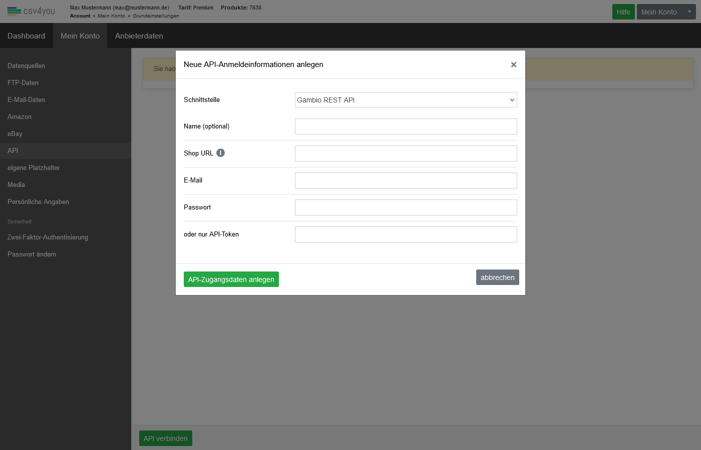 Folgende Daten werden dazu aus Ihrem Gambio-Account benötigt: